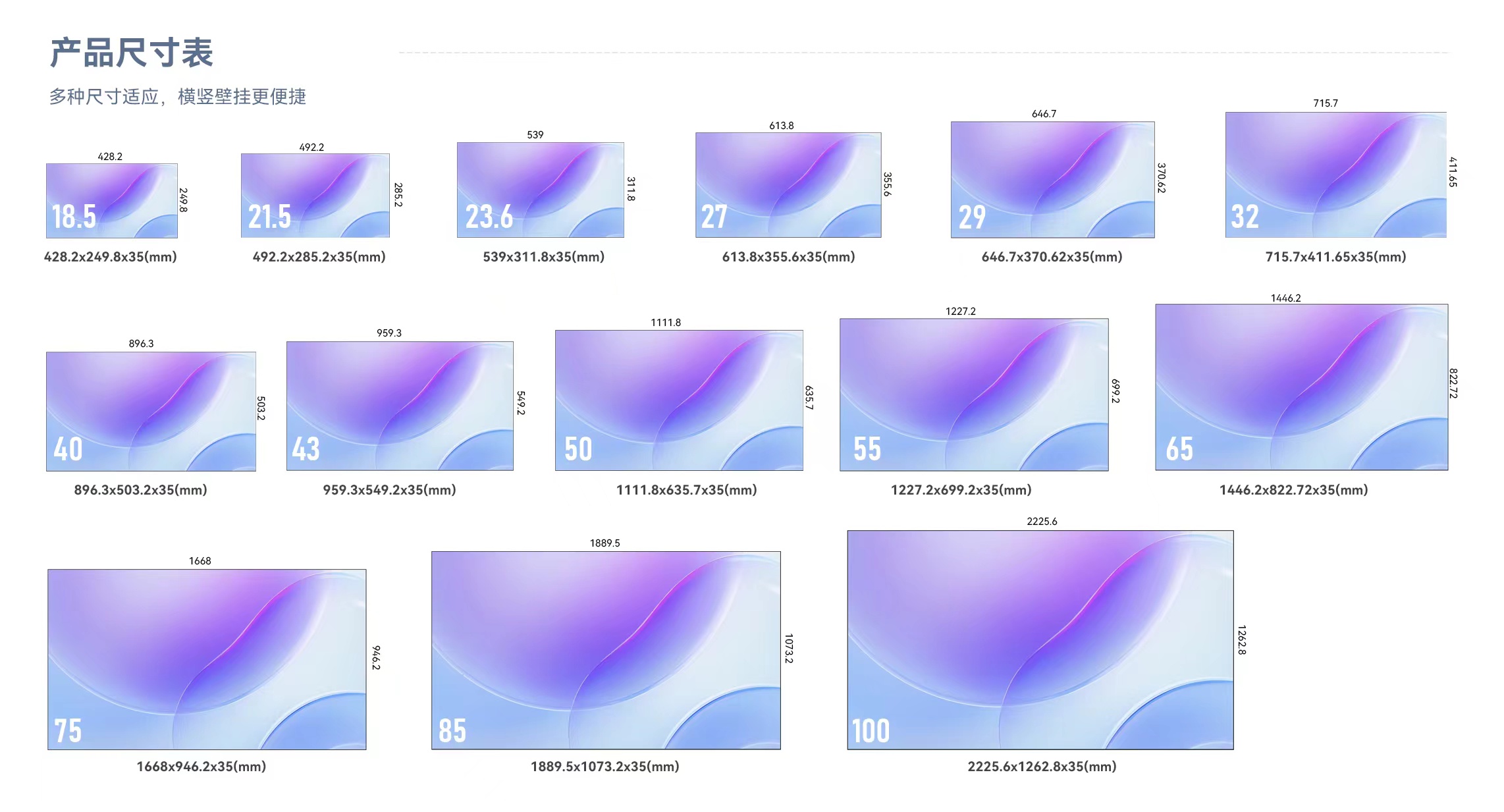 | ຂະຫນາດຫນ້າຈໍ LCD | 21.5 / 32 "/ 43" / 50 "/ 55" / 55 "/ 65" ທາງເລືອກ |